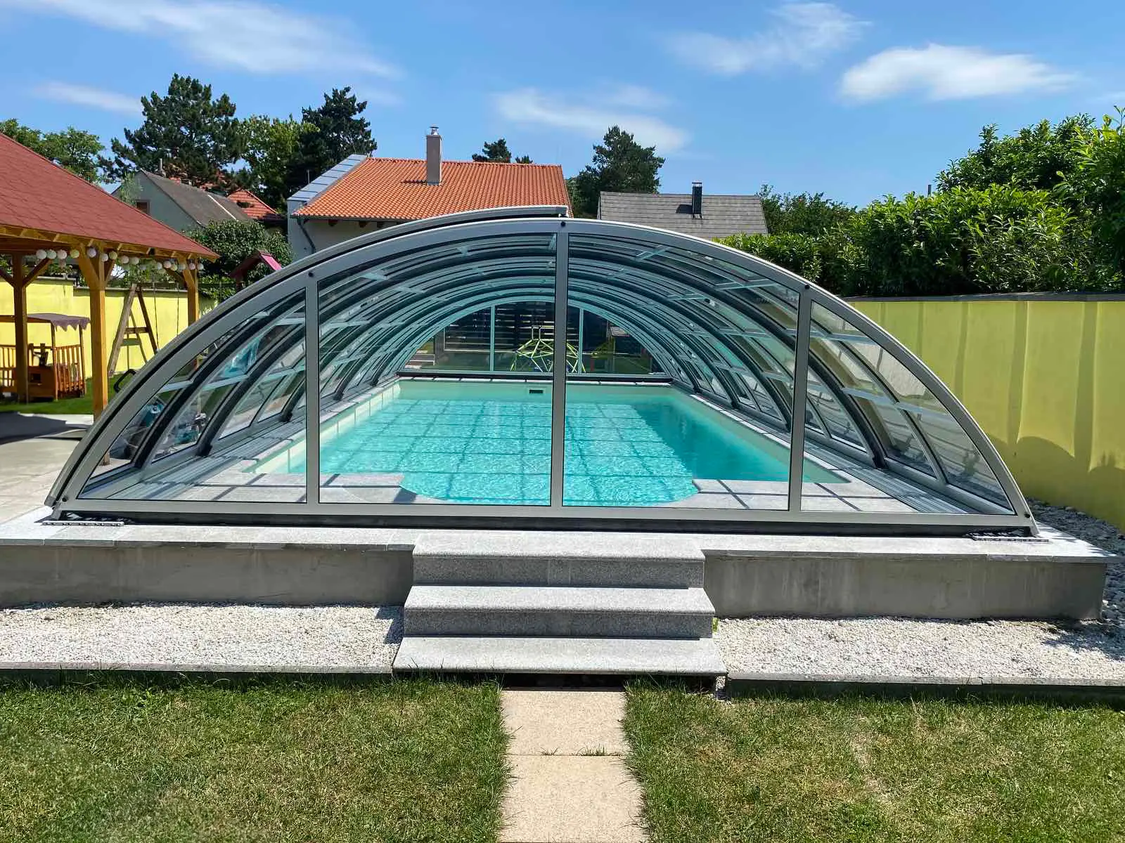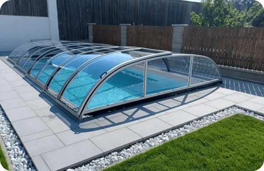 Unser Montageteam baut die Abdeckung für Ihren Pool innerhalb einer Woche auf. So können Sie sich von Problemen verabschieden und eine längere Poolsaison sicher genießen.