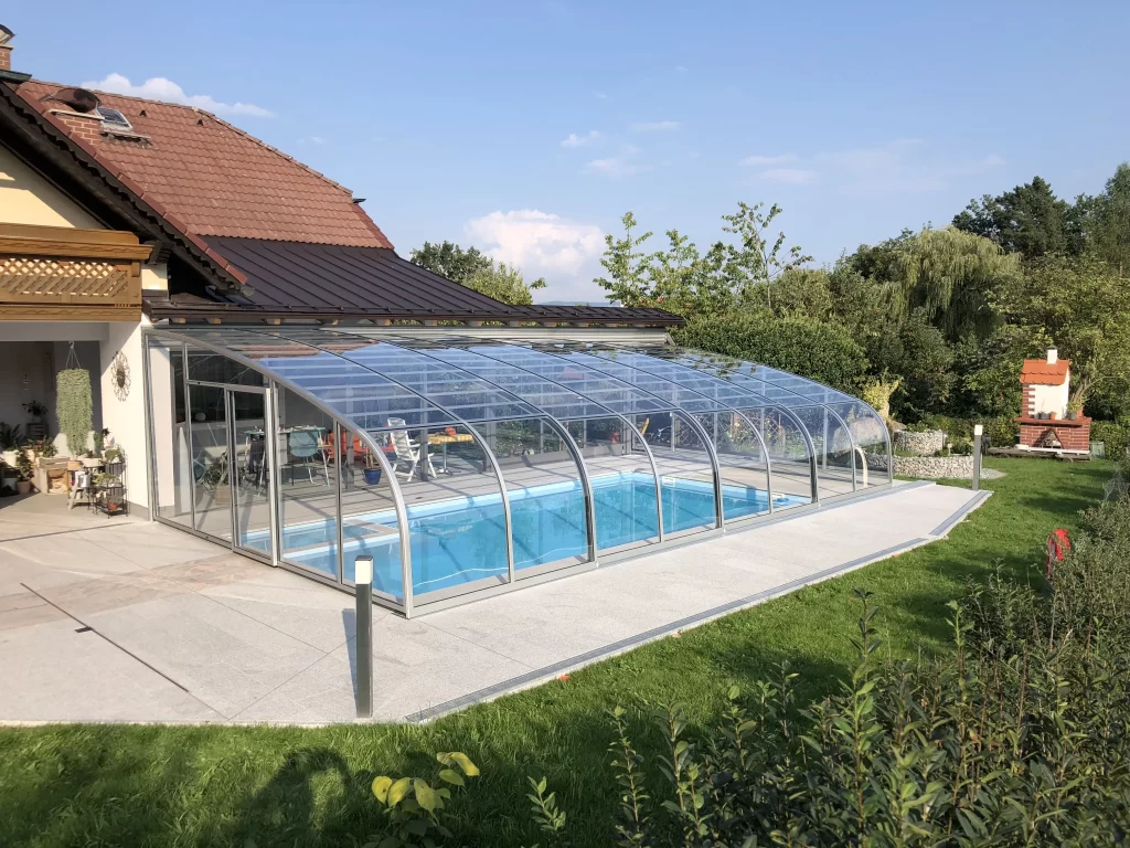 Aufgrund des Treibhauseffekts entweicht keine Wärme unter der Poolabdeckung, sodass der Pool nachts nicht abkühlt. Sie können ihn am nächsten Tag öffnen und bei der gleichen Temperatur nutzen, wie Sie ihn am Vortag geschlossen haben.